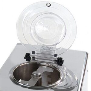 - Mixbehållare med dubbla lock. Möjlighet att tillsätta bär, choklad och mm medan maskinen tillverkar glass