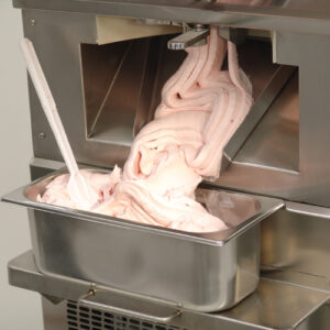 Den är utrustad med den nyaste tekniken och med över 50 glassprogram. En skrapkniv med automatisk utmatning pressar ut glassen från botten av tanken för att spara tid under utmatningen. Delarna är enkla att demontera för rengöring och kan diskas i diskmaskin. Denna maskin passar bra till storskalig glasstillverkning.