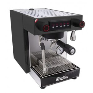 Traditionell automatisk espressomaskin i svart utförande. Magister ES40 har modernt utseende och är robust byggd med många finesser. Den har också plats för höga muggar. Maskinen är lämplig för baren, kontoret, lilla caféet eller hemmet.