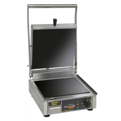 Ny från Rollergrill! Denna keramiska klämgrill har hög kvalitet och är snabb: på 2,5 min når den 270°C. Den övre plattan är anpassas till tjockleken på paninin/smörgåsen. Klämgrillen är designad för komfort och säker användning. En avtagbar spillbricka samlar in överskott av fetter, vätskor mm, vilket gör den lätt att rengöra. En fuktad tvättsvamp är tilläcklig för att få tillbaka glans i skivorna efter användning.