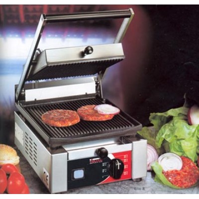 Klämgrill i litet format för maximalt resultat. Tack vare sitt lilla format är Elio R mycket lättplacerad och enkel att hantera, samtidigt som du får en relativt stor grillyta. Praktisk för grillning och uppvärmning av all sorts mat. Den övre plattan justeras i höjdläge och förblir i god balans för tillredning av matvaror med olika tjocklek. Denna funktion halverar tillagningstiden, ger dubbel effekt och bättre kvalitet.