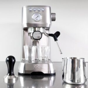 Med sin kompakta storlek tar Solis Barista Perfetta endast liten plats och passar därför perfekt även i det minsta köket eller på det lilla kontoret. Perfekta din morgonkafferutin med den slimmade, prisbelönade espressomaskinen. Denna noggranna design innebär att du får arbetsbesparande finesser såsom programmerbara doser, manometer och automatisk rensning. Ett koppvärmeri för håller kopparna varma som gör att du kan njuta av kaffet vid rätt temperatur under en längre tid. Denna espressomaskin passar bra både som en traditionell maskin eller podsmaskin.