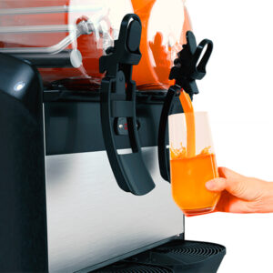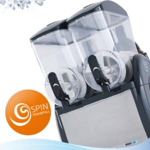 GBG SPIN är en professionell slushmaskin med hög kapacitet, som serverar slush, sorbet, iskaffe, iste och andra kalla drycker. Dess kapacitet gör den idealisk för ställen med hög omsättning och försäljning, där det krävs snabb och effektiv servering. Maskinen är utrustad med överlägsen teknologi för bästa produkt. Den har tilltalande design och den har enkel demontering av behållaren, droppskål och tapphandtag för snabb rengöring och bästa hygien. Inga verktyg behövs.